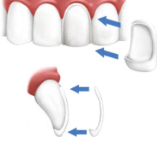 Esta técnica corrige imperfeições e evita desgastes, através da fixação de uma porcelana fina no dente. As lentes de contato dentárias servem para pequenas correções, como fechamento de espaços, aumento do comprimento, largura, arredondamento de ângulos. É tão fina que parece transparente, pois isso ganhou o nome de lente de contato dental.
