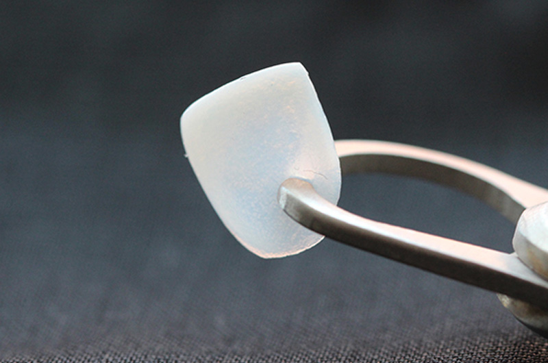 As lentes de contato dentais nada mais são que facetas mais finas, lâminas de porcelana com cerca de 0,3 mm a 0,5 mm de espessura. A porcelana imita muito bem o esmalte dental em todas suas características da estética a dureza. A espessura tão fina permite desgastes dentais menores, preparos mais conservadores que vão preservar mais estrutura dentária.