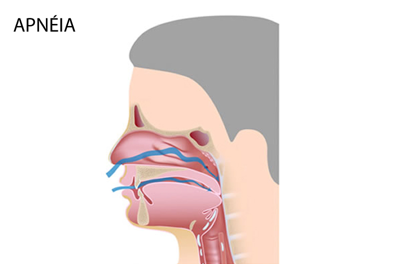 Já a APNEIA ocorre quando esta obstrução se agrava, sendo uma obstrução total das vias aéreas superiores, o que impede a passagem do ar.
