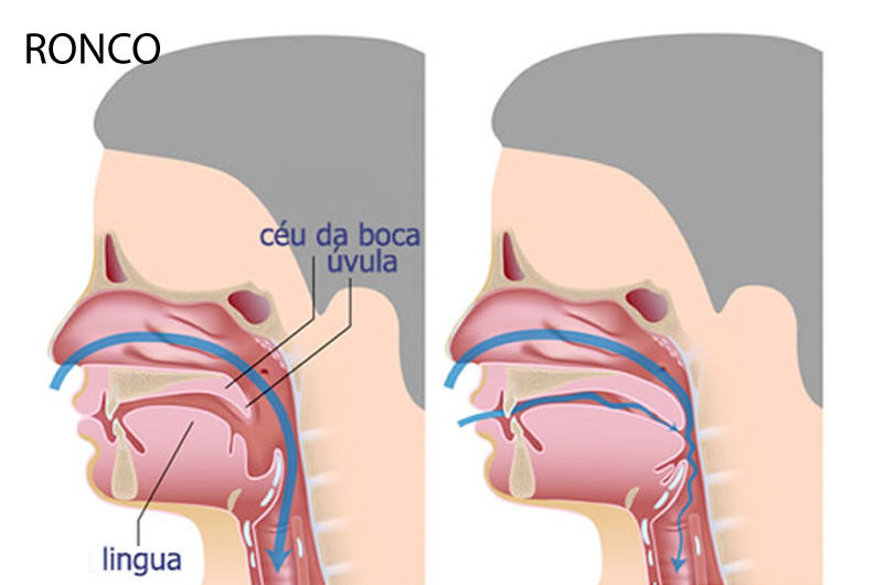O RONCO é uma obstrução parcial das vias aéreas superiores, obrigando a pessoa a respirar pela boca, sendo que o ar consegue passar, porém, produzindo ruído pela vibração causada pela passagem do ar com dificuldade.