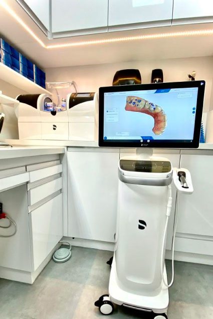 Temos em nossa Clínica a tecnologia CAD/CAM, com a qual podemos realizar procedimentos de forma totalmente digital, o que quer dizer que na maioria dos casos não precisamos mais utilizar a moldagem tradicional, que é totalmente substituída pelo escaneamento digital.