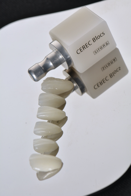 Em casos estéticos, podemos confeccionar em até um dia ou na mesma consulta o trabalho definitivo em porcelana, utilizando o sistema CAD/CAM CEREC, que possibilita a fabricação de restaurações estéticas de cerâmica em apenas uma sessão.