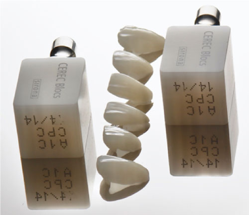 O CEREC é o modo mais confiável e rápido de fabricar facetas de porcelana dental. As facetas, também chamadas de lentes de contato dental laminadas ou lâminas de porcelana, são finos pedaços de porcelana que cobrem a frente, e às vezes os lados de um dente, reconstruindo totalmente o sorriso de uma pessoa. As facetas podem mascarar descoloração, restaurar o comprimento e a aparência dos dentes desgastados, quebrados ou manchados. Eles são mantidos unidos aos dentes através de complexos processos de colagem dental, e dão maior resistência ao dente.