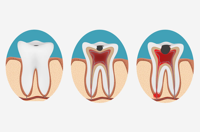 Imagem 1 - Evolução da cárie até formação de uma lesão periapical.